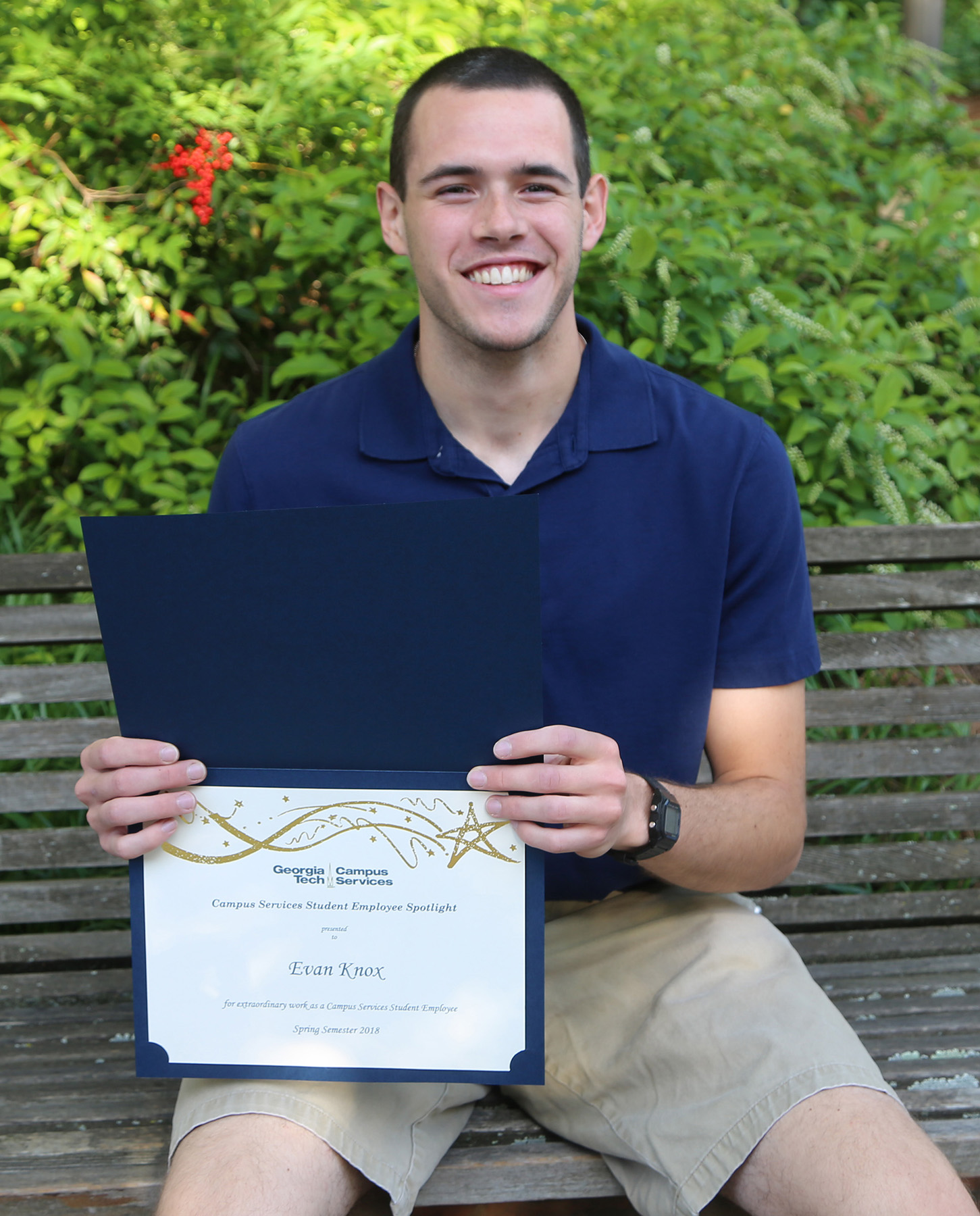 Evan Knox received the Campus Services Student Spotlight Award Spring 2018